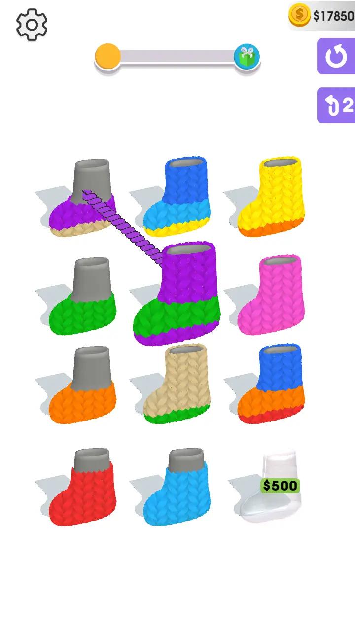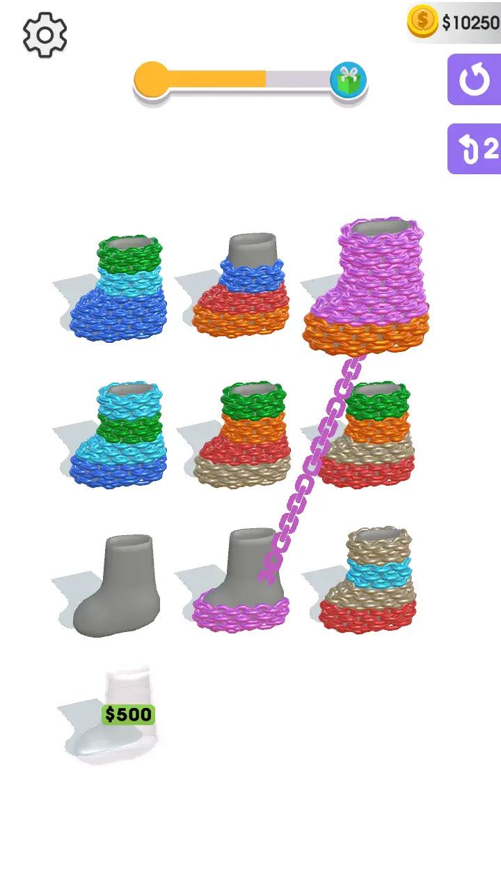 3、每种毛线都有不同的属性,如颜色、材质、长度、形状等。玩家需要将同类的毛线按照这些属性排序。