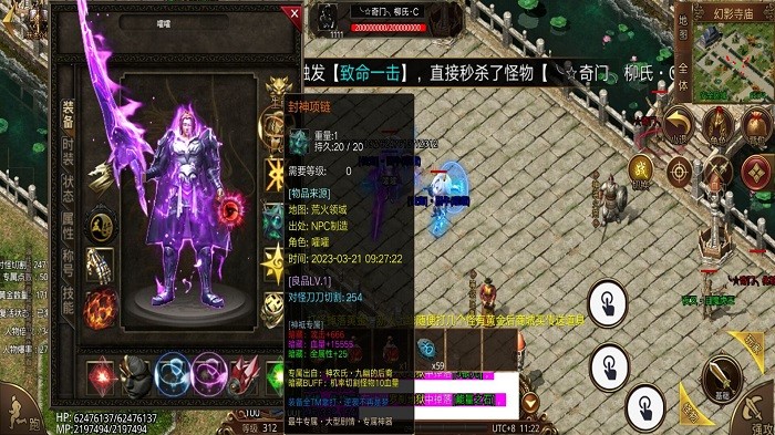 2、刀刀暴击,开局打小怪就能获得神级装备,技能全新升级,超大地图免费体验。