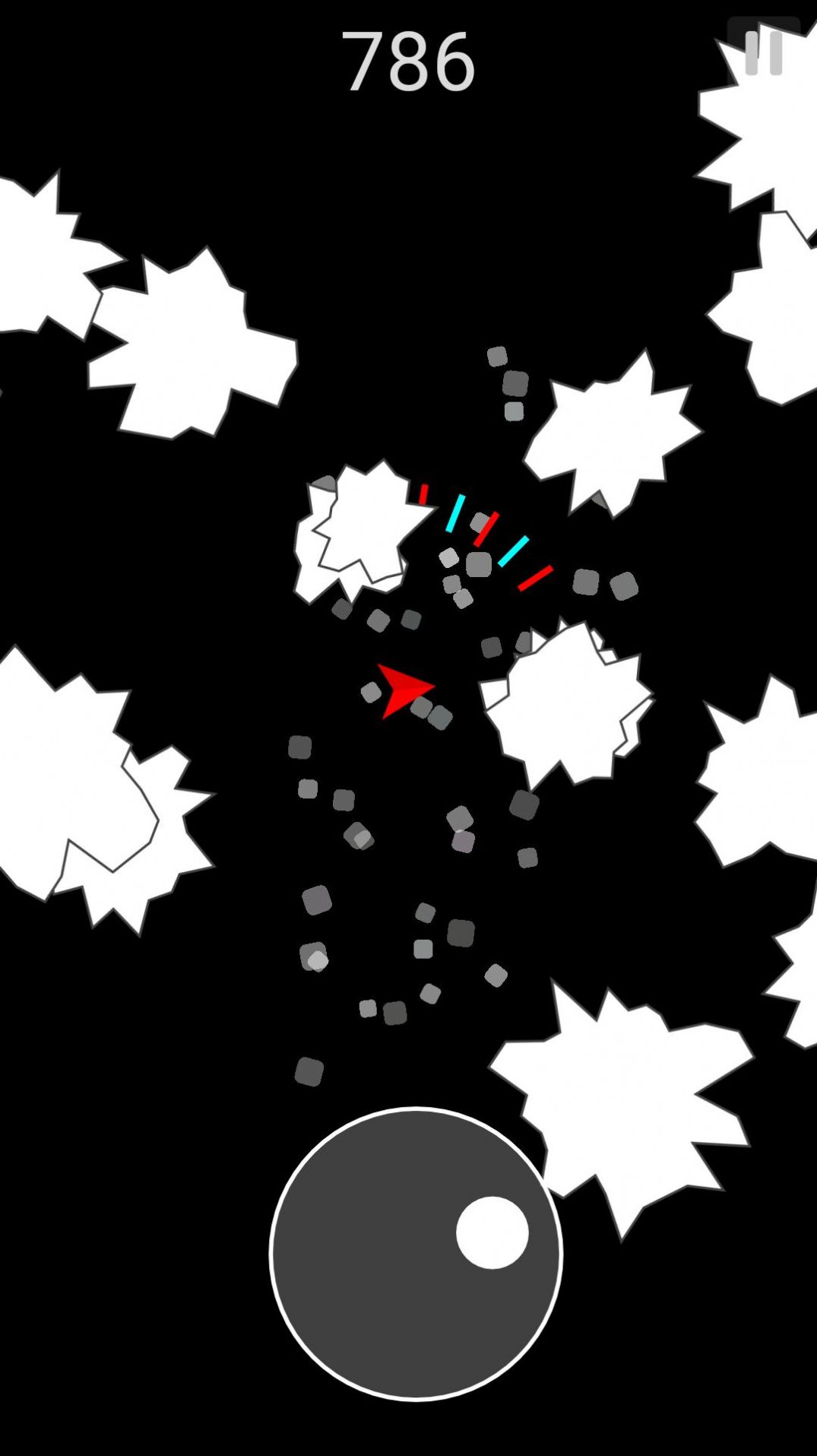 3、完全随你自由的畅享,并且单机版游戏,不联网就能完,玩家只需控制三角飞船的方向。