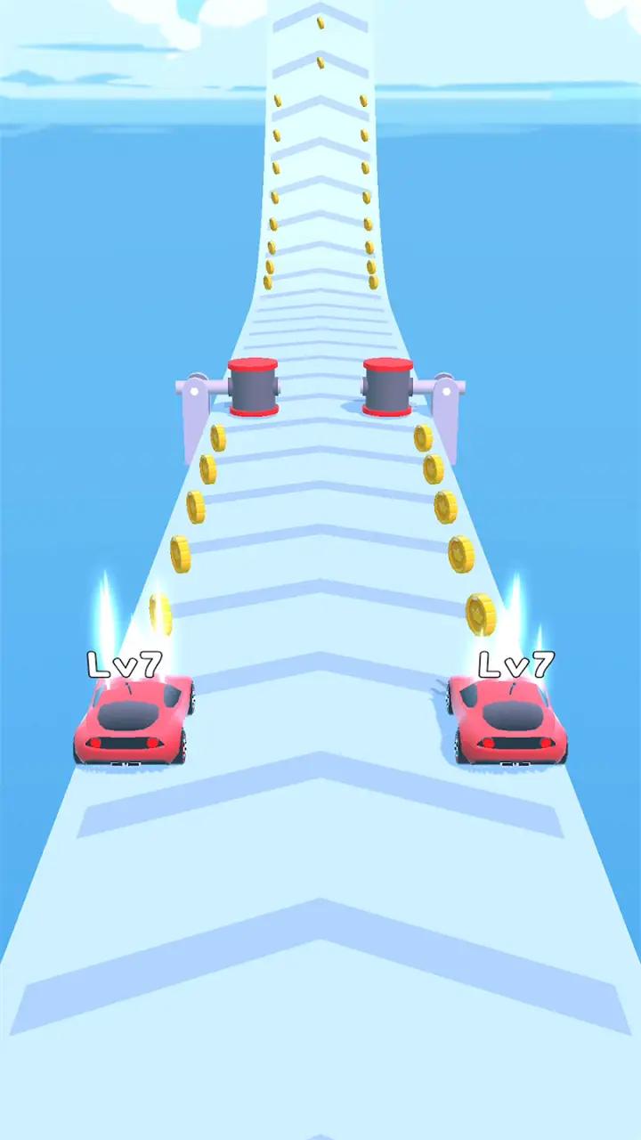 1、一款非常有趣的赛车跑酷游戏,游戏中玩家需要收集不同种类的汽车来合并。