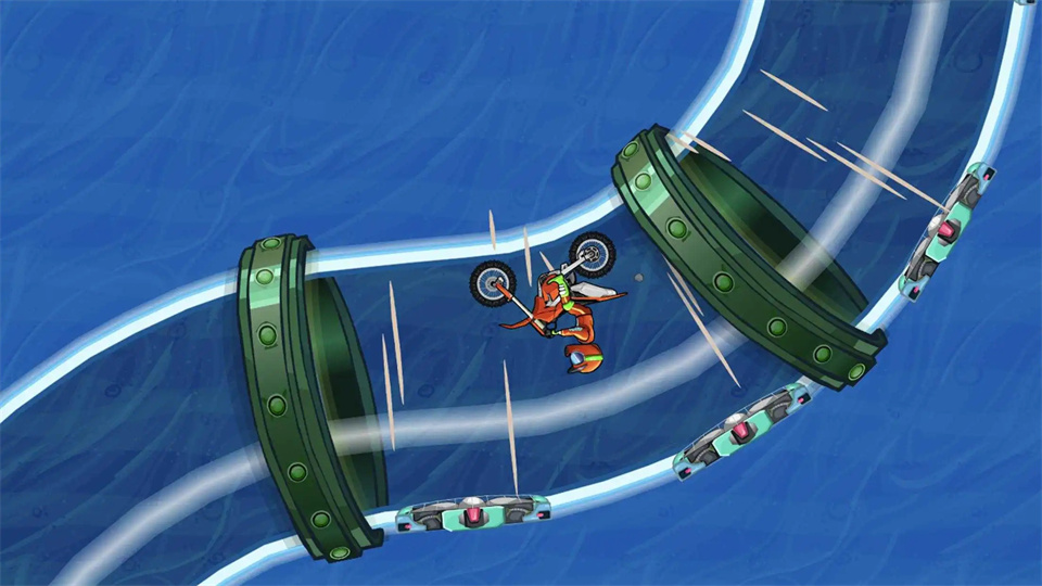 3、游戏的风格非常独特,玩家需要通过轻轻一触触摸屏幕便可以操控摩托车,让玩家在飞速的体验中享受到酣畅淋漓的游戏感觉。