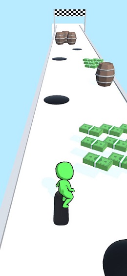 1、玩家只需要一只手的指尖轻松的左右滑动手机屏幕,即可操作角色移动,不断向前进。