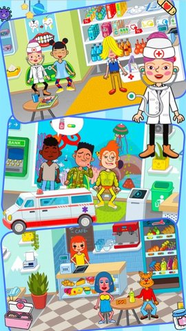 1、樱花小镇超级医院是个多人玩家一起生活的模拟游戏。加入这里,你就可以住在一个小镇上。