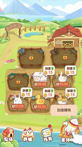 3.十分可爱的游戏画风,可以看到猪猪、鸡、鸭等多种动物。