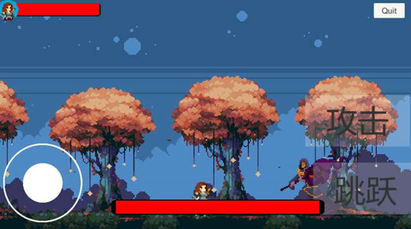 在游戏中,运用攻击和跳跃两个按键,一往无前地向前冲吧;