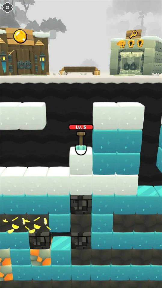 2、他们需要操纵矿工沿着隧道滑动,以避开各种障碍,同时收集金币和宝石。