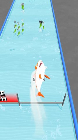 3、为了升级,你必须吃很多东西。只要你把赛道上的小鱼都吞下去。