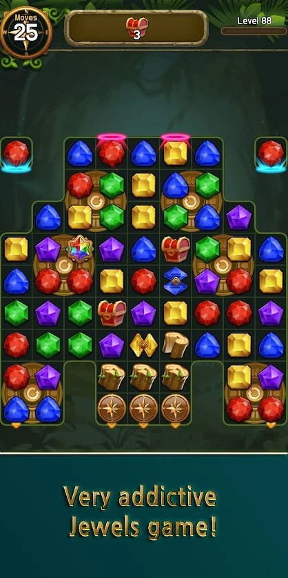 2、你需要将相同颜色的宝石组合起来,在一定数量的步骤内达到目标分数。