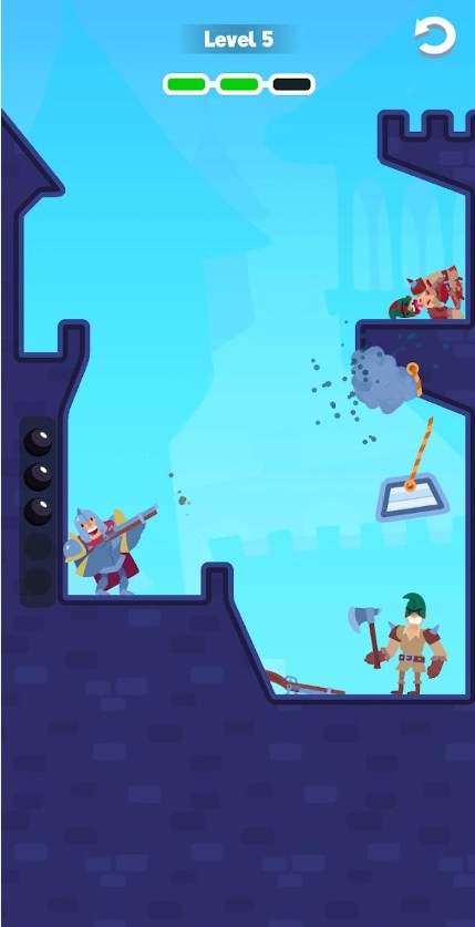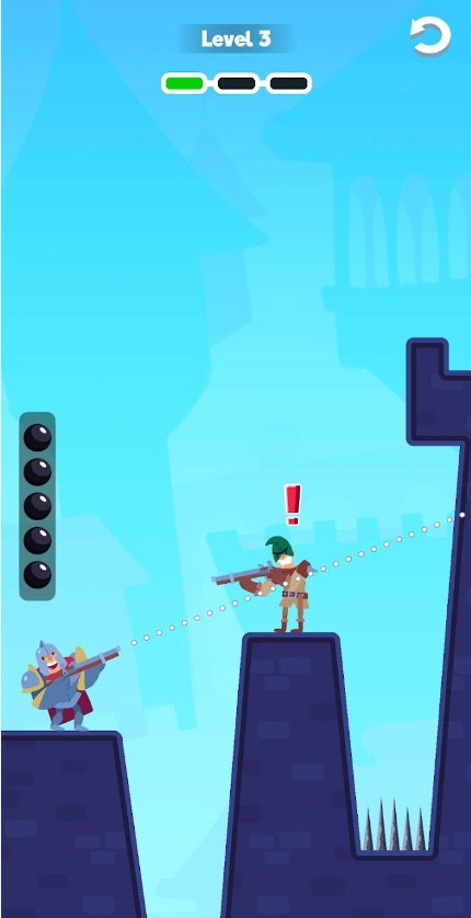 1、当用弓箭射击时。玩家需要瞄准对手才能命中。每个关卡都有不同的敌人力量和各种道具供玩家使用。