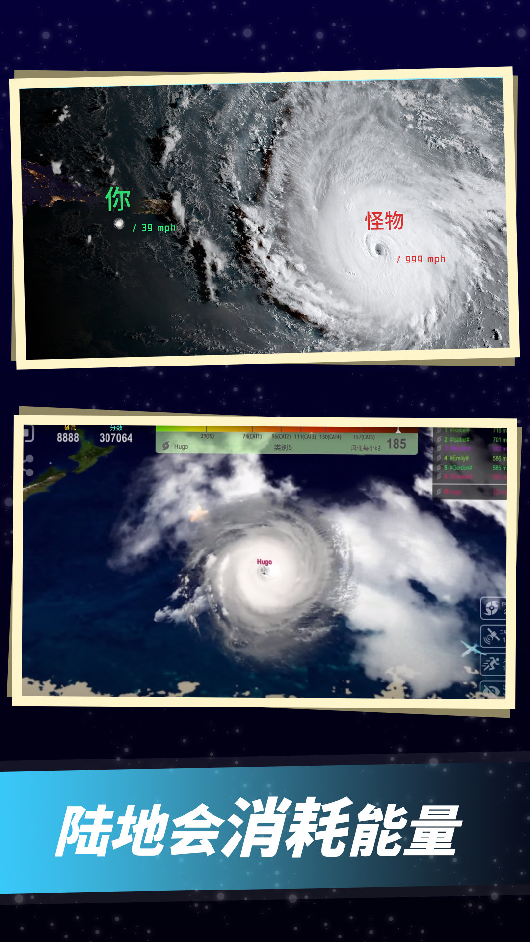 1、游戏创造了逼真的飓风形象和优美的游戏环境;不断吸收红色、绿色和蓝色能量,形成飓风。