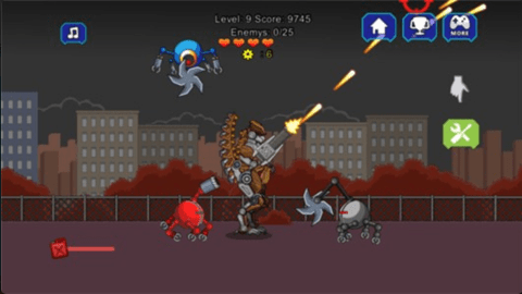 丰富的游戏关卡。各种类型的机器人被淘汰,并挑战丰富的关卡。