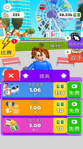 游戏过程中玩家通过捡取赛道内的道具,提升自己的肌肉和体格。