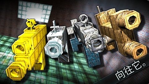 2、玩家可以进入仓库,看到地上的积木。这些底盘就是造枪的地方。