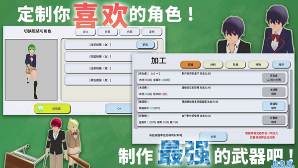 在校园里可以使用各种道具,还能制作各种各样的武器,在校园里尽情的去破坏吧。