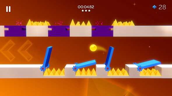 2、控制你的小球开始冒险挑战,不断的通过各种的难关,小心那些危险的尖刺;