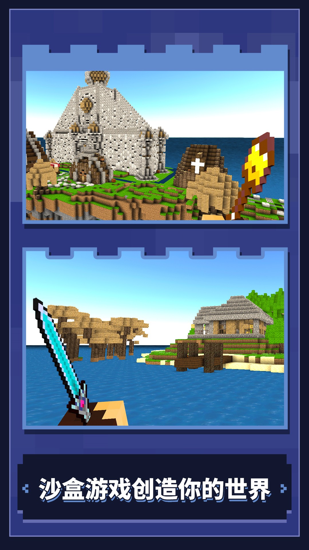 2.探索随机生成的世界,修建最非常的建筑,从简单到宏伟的建筑。
