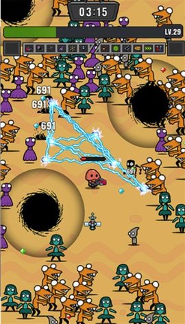 3、不断升级技能和武器,增强力量,并逐渐能够快速杀死割草等大型魔法物体。