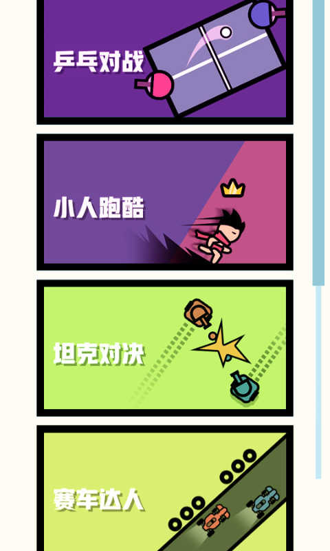 1、在本站下载安装好双人竞技场最新版后,点击进入,上下滑动选择自己喜欢的游戏进行挑战。