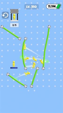 1、与其他弹跳游戏不同的是,这款游戏的主角是由多根绳子组成的玩偶。