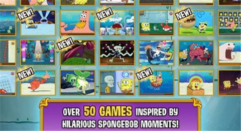 1、卡通游戏画风,玩海绵宝宝开始你的水下生活,各种人物都很还原动画设定;