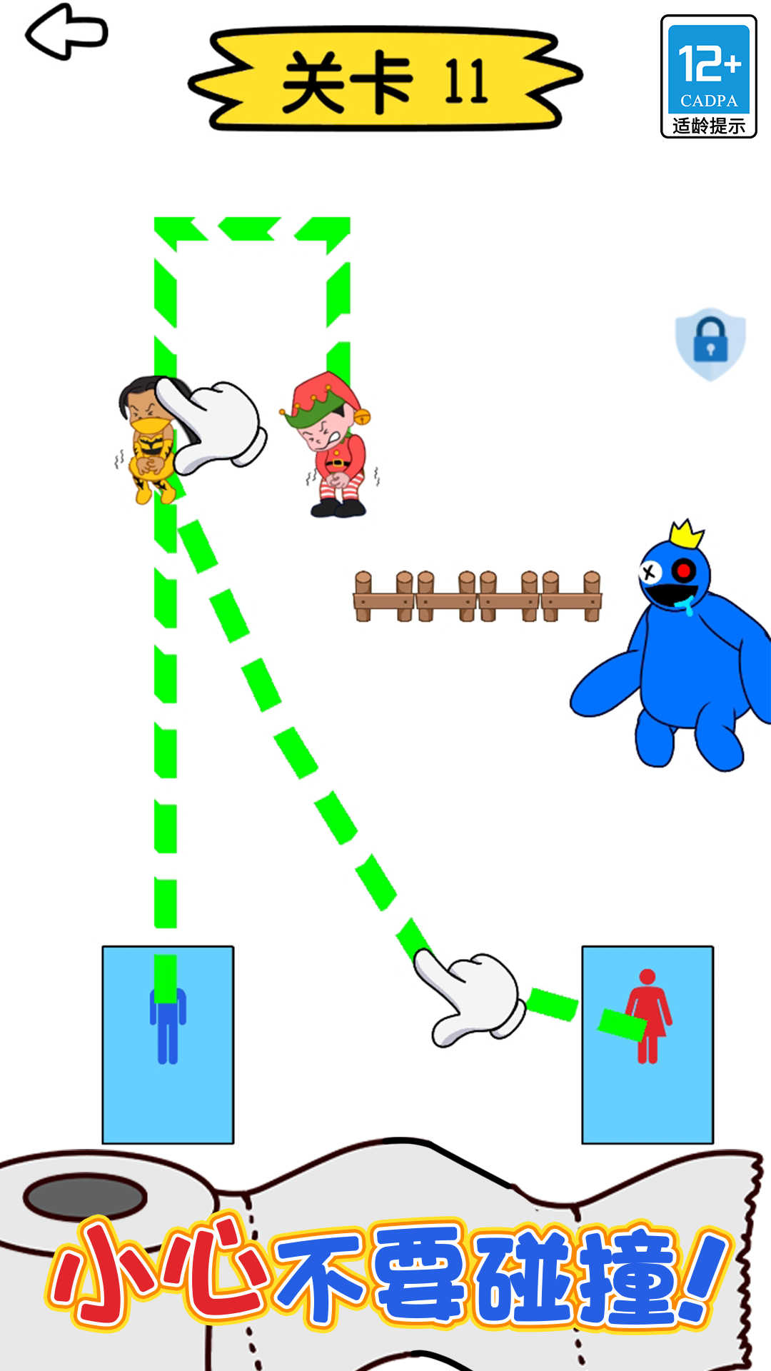 4、不断地开动脑筋,尝试各种各样的方式,才能闯关成功。