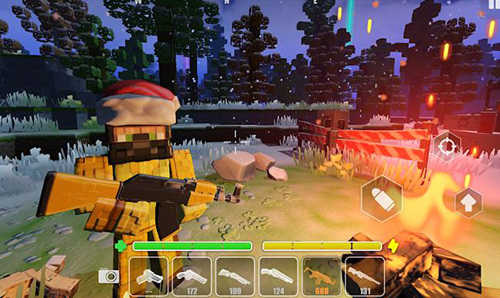 1、僵尸支配的方块世界,玩家要如何在里面进行生存,获得更多的生存物资,先装备自己的武器吧。