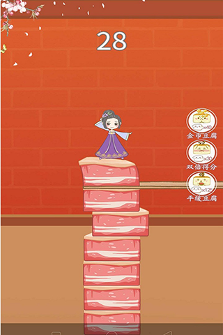1、点击屏幕进行跳跃,让女孩稳稳落到豆腐上。