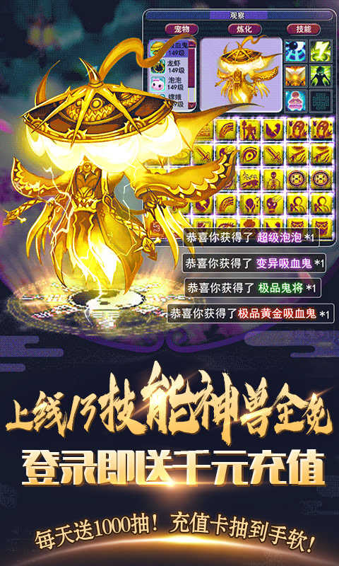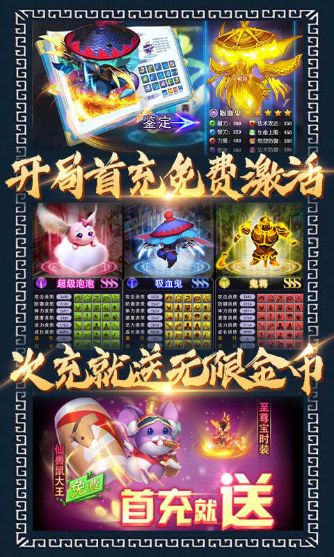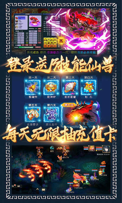 ★送充值免费激活首充!免费拿13技能仙兽!还有海量进阶资源,助你一路巅峰!