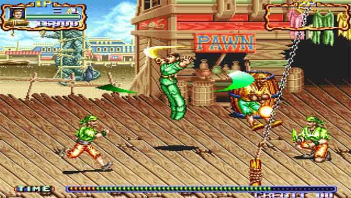第三关:关口看似很强..(因为人多.一人玩是2人!多人玩是3人)其实不然!这关是有规律的!!!!就拿一人玩来说吧!因为多人玩过这关就更简单了!当到达关口时他们2人会从瓶子中跳出.而且还有一段时间要变身..这时你站到其中一人的身边(就是能抓住他的地方)!等关口能动时你也就抓住了一人.这时你就把这人直接往到另一人身上仍就行了...这时两人都倒了过去狠打他们PP吧!!!(这关与别关不同点就是他们被打倒后不直接站起来而是要爬到离你远的地方再站起来)过这关的关键就在这了!当他们爬时你要看清走向跟住他们当一人站起时你要正好在他身边能正好抓住他.这时你就能把他当武器了!朝另一人仍去吧(就象一开始一样)....哦?又是以次循环直到打死他们!!!!过这关时有时并不一帆风顺玩家要随机应变啊!实在不行时别吝惜保险(A+B)