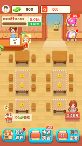 3、在游戏中,你可以获得完成任务和更新餐厅的红包,很简单。