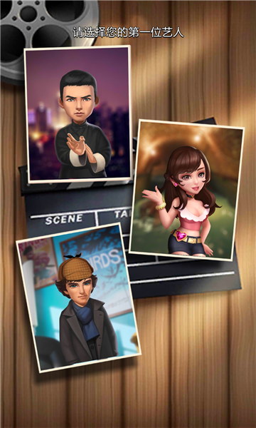 我们的主角来到的爷爷的电影院,一段啪啦啪啦的剧情后,游戏会给我们三个四星艺人抉择一个,还是挺良心的,分别是中国,美国,日韩三个国家的艺人。这里小编选择中国艺人,因为后面推市场是时候会比较简单。当然也可以选其他的艺人,只要在后续的招募到其他国家艺人影响不大。