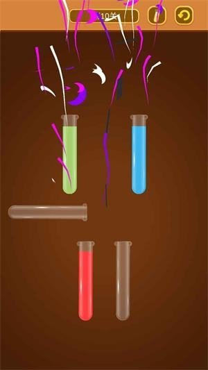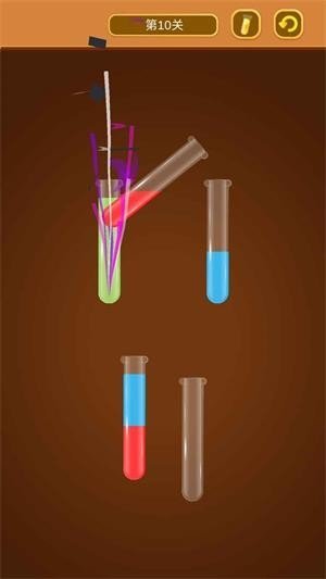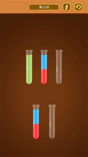 果汁爱消消游戏是一款操作非常简单易上手非常好玩的益智游戏只有当所有试管中都只有一种颜色的液体时消除特效赏心悦目,玩家需要这款游戏当做你们可以赚钱的游戏就行了,看看你能闯过第几关,感兴趣的亲们赶紧下载吧。