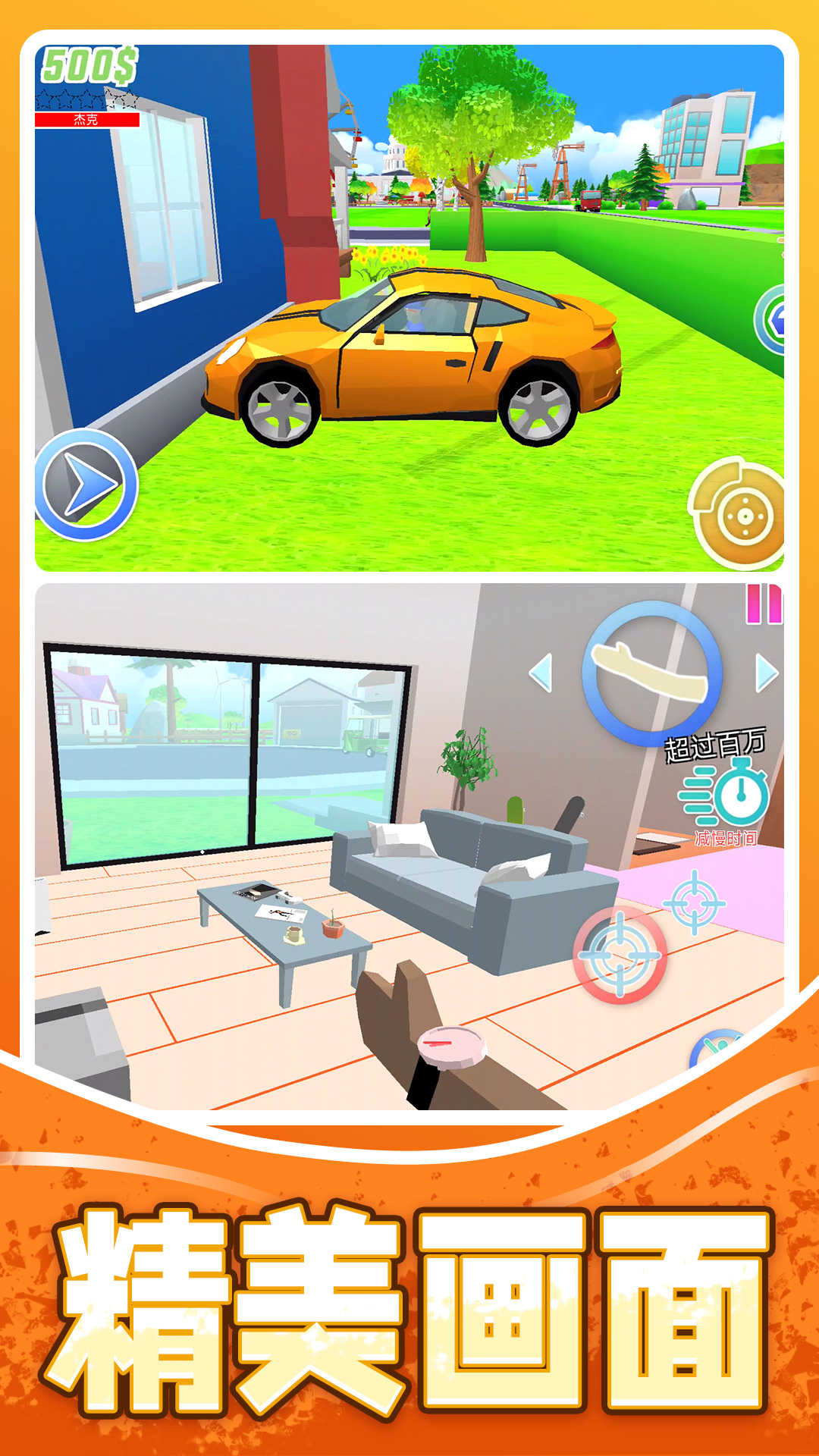 在游戏中的汽车以及房屋大多都可以进行交互,汽车还带了特制的漂移系统,让你成为小镇内最靓的崽。游戏刚开始只能选择杰克这一个角色,后续会有更多的角色提供给大家,每个角色自带的特殊技能不一样。
