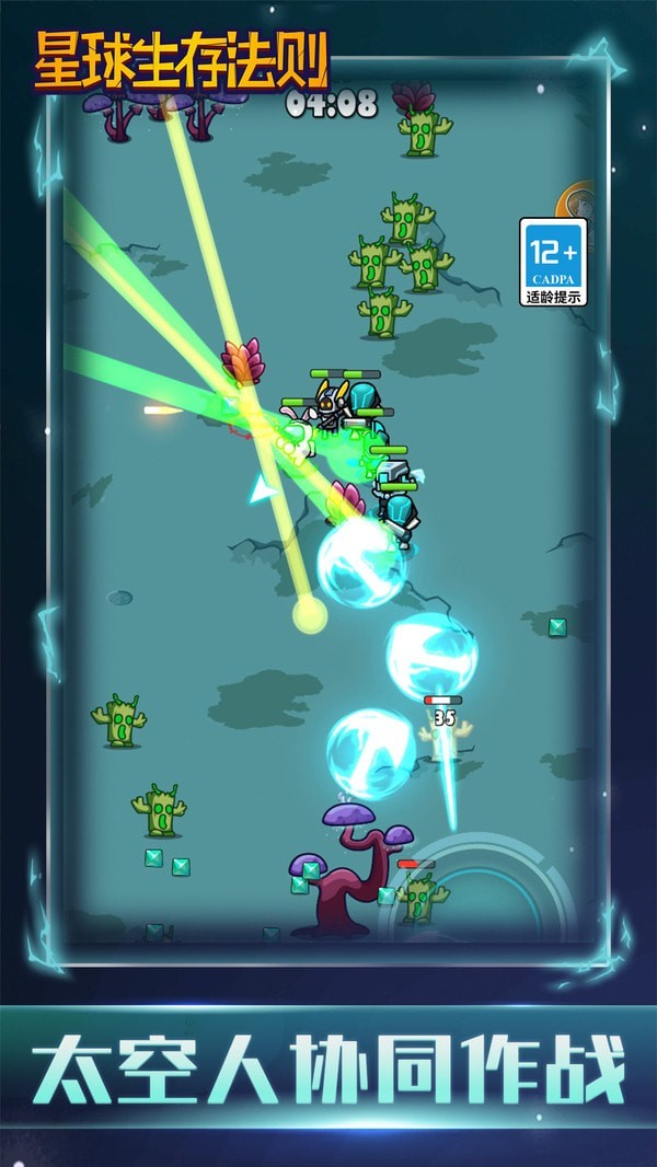 3、他们可以解锁更多的太空战士,组队用技能收割和征服关卡,并消灭来袭的外星敌人。