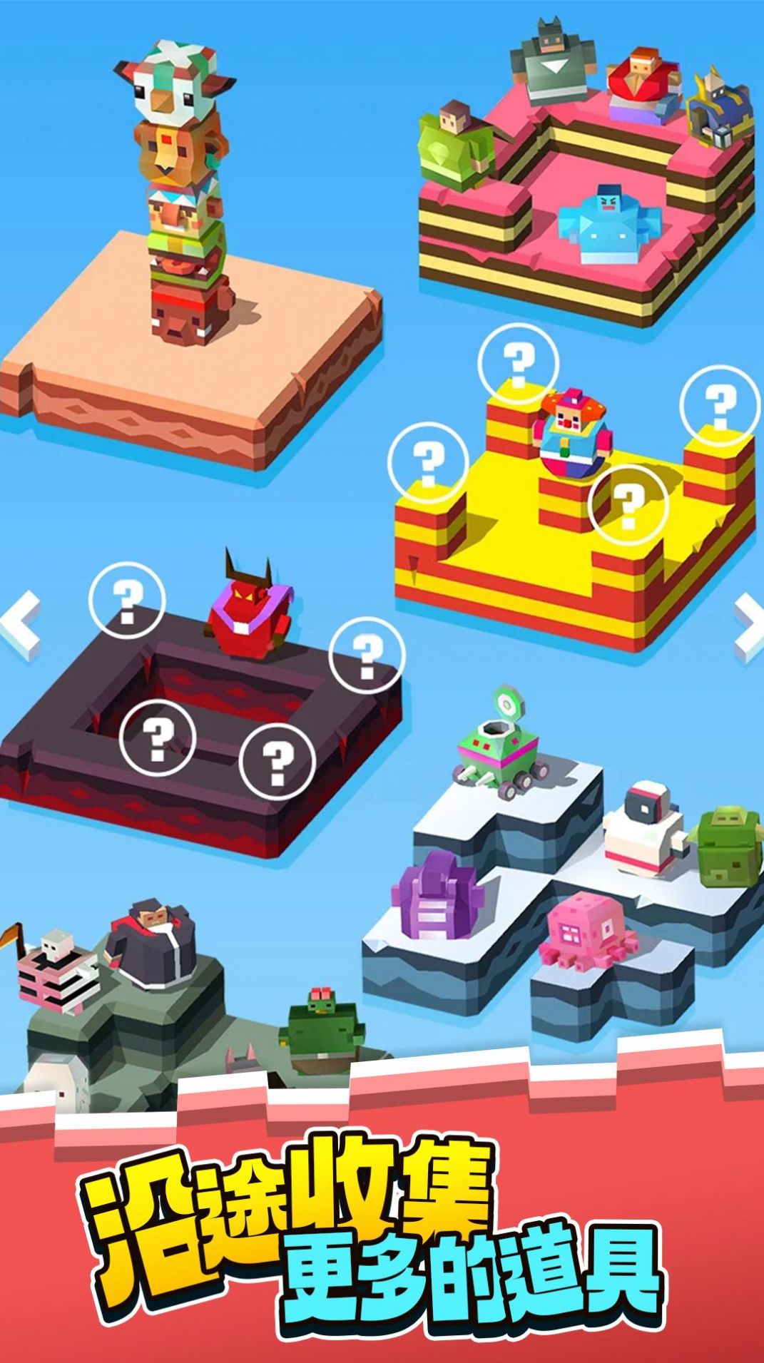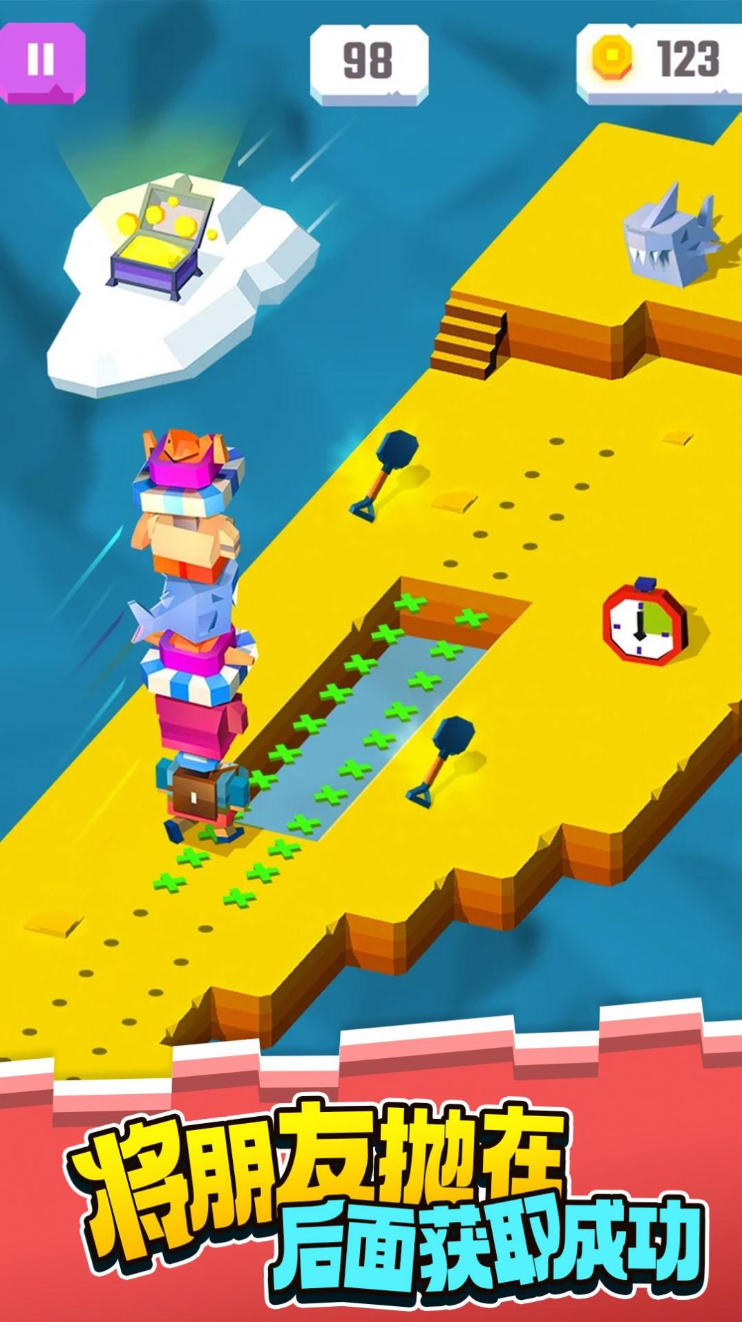 1、搜集不同的道具,解锁更多的方块,完成堆叠任务,一起叠高高;
