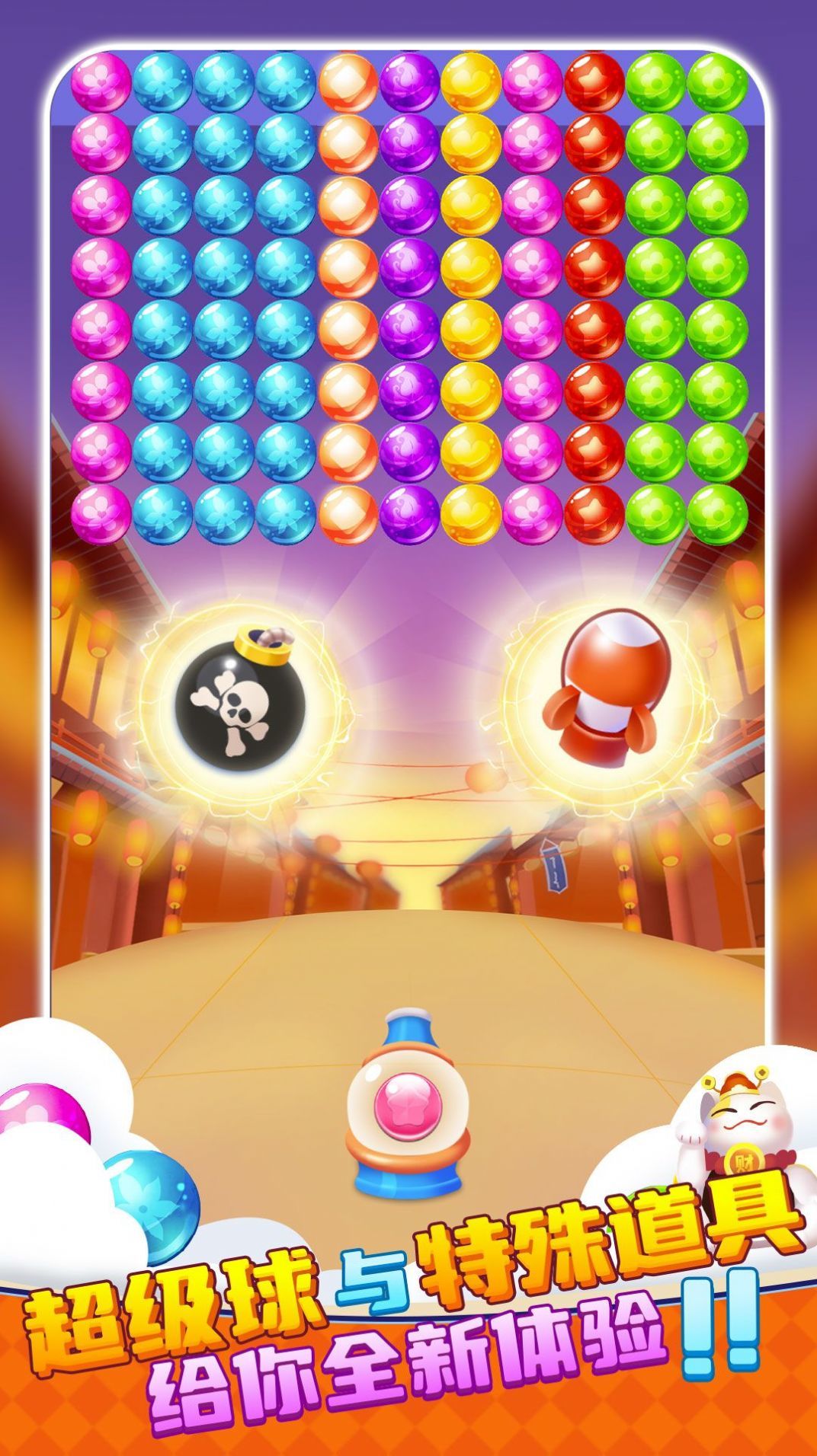 如果你想找一款轻松、有趣的休闲游戏来放松自己,那么招财泡泡猫将是一个不错的选择。