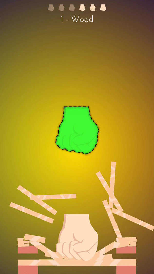 在适当的时间点击以匹配拳头并穿过木头,混凝土,铁,钢等等。