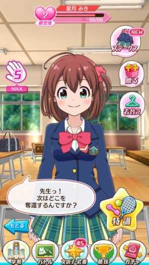 玩家们除了培育学生,并利用应援点数来强化学生能力之外,还可以帮女学生们替换服装造型,打造女学生们各自不同的惊艳一面!