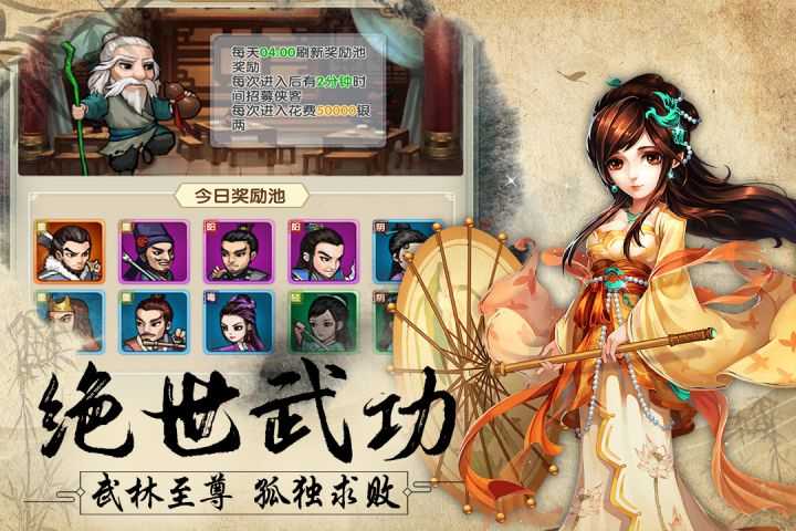 1、多为不同的武侠角色可以上场,拿出你的智慧将他们搭配成最佳的阵容。
