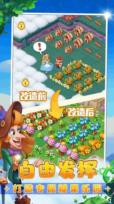 --游戏带我们置身梦幻般的童话世界中,简单的游戏玩法,在糖果精灵传奇免费版中,玩家可以通过轻松点击,合成糖果,创造属于你的梦幻童话游戏世界。
