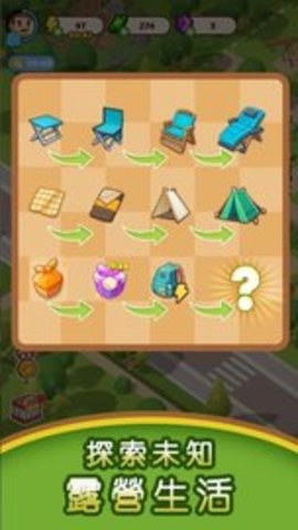 2、你可以通过收集、制造和出售来赚取虚拟货币,并用它来购买或升级露营设施。