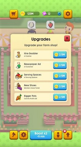 2、在他自己的土地上,不断扩大他的农场规模和经济实力。游戏画面精美,音效优美,玩法简单易用。