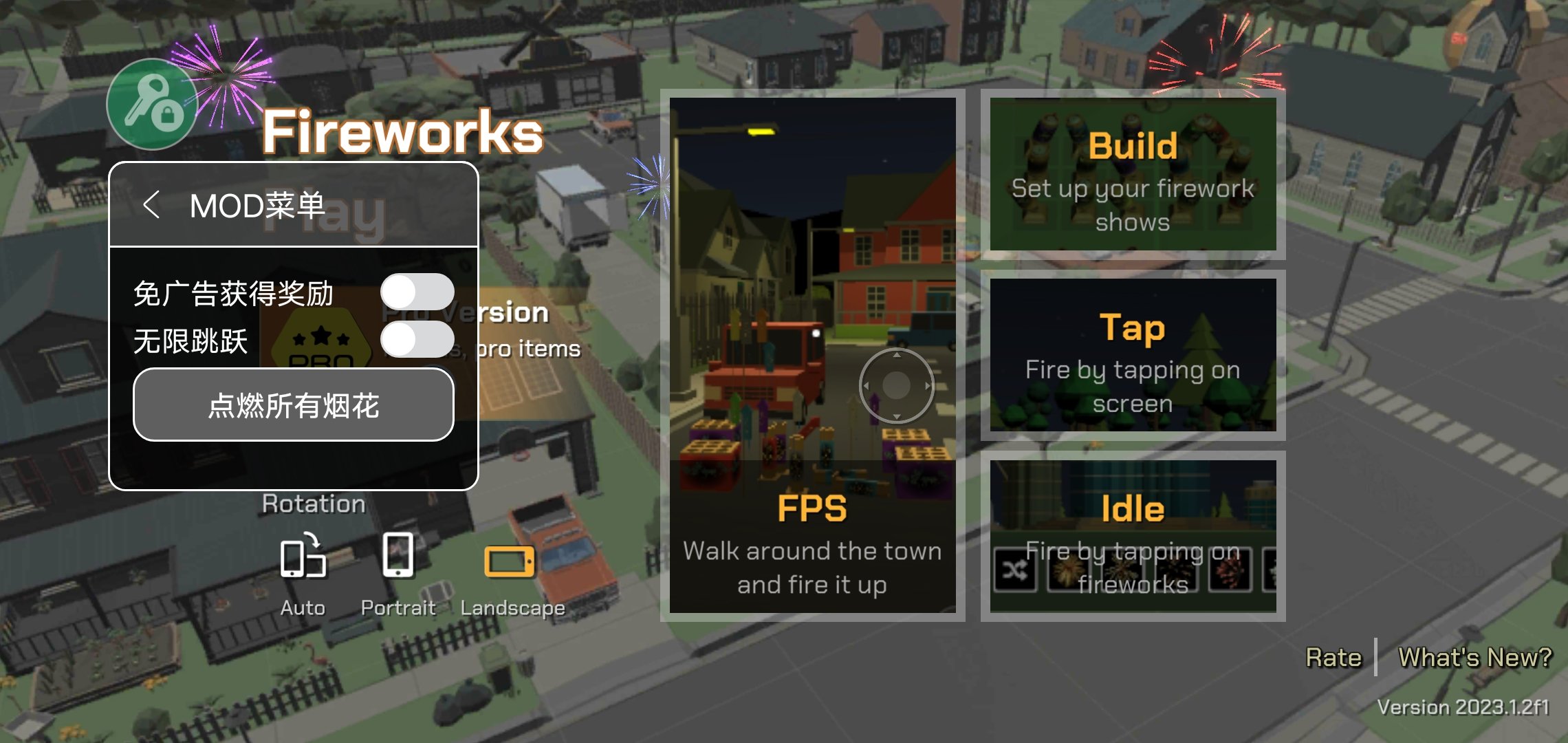 使用FPS模式,您可以在镇上走来走去燃放烟花,并在邻居旁边制造一些爆炸。