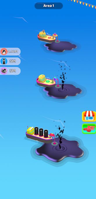 然后用运输船将它们运回陆地,不断累积收益,用收益升级挖矿设备,打造新的采油点。