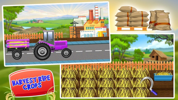 1、卡通风格的农场,虽然整体规模小,也可以收获很多,去工厂完成最后一步。