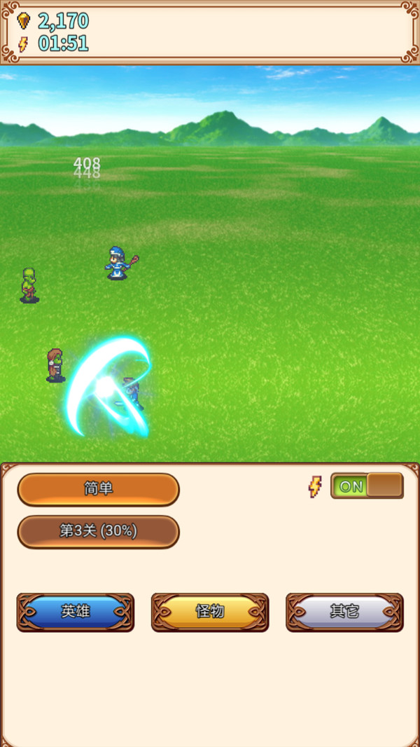 3、玩家可以增加攻击力和暴击率,也有各种英雄可供选择。