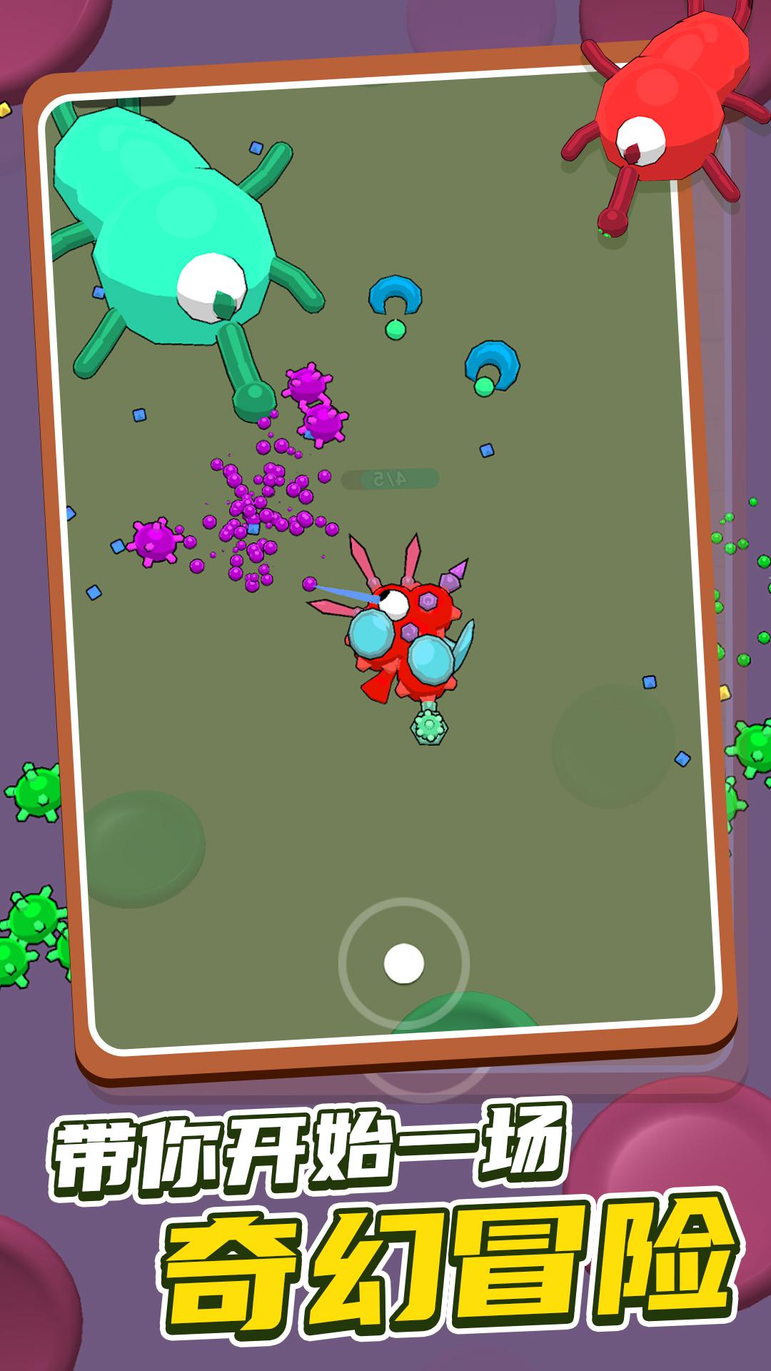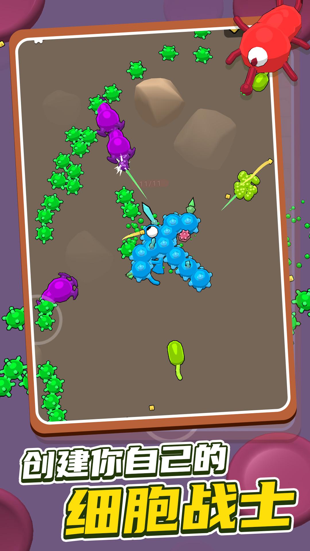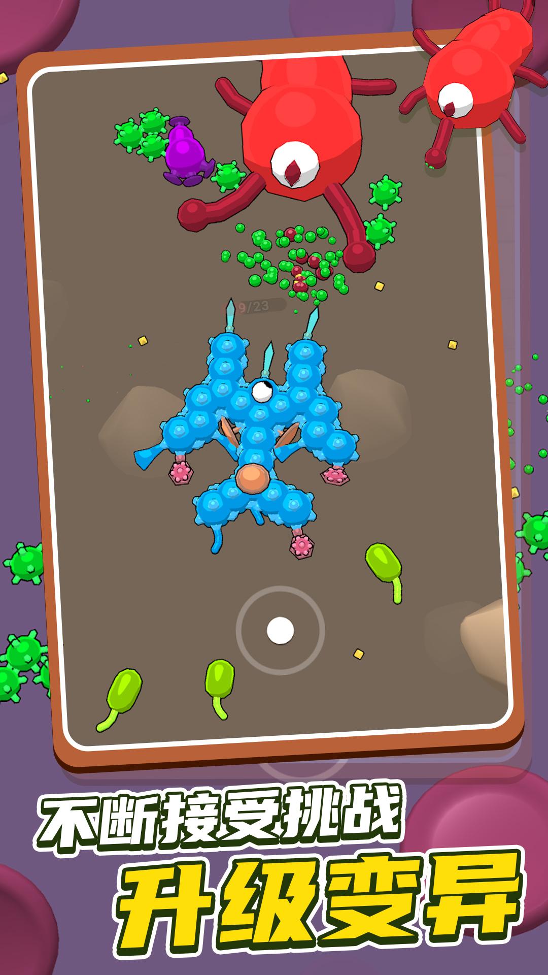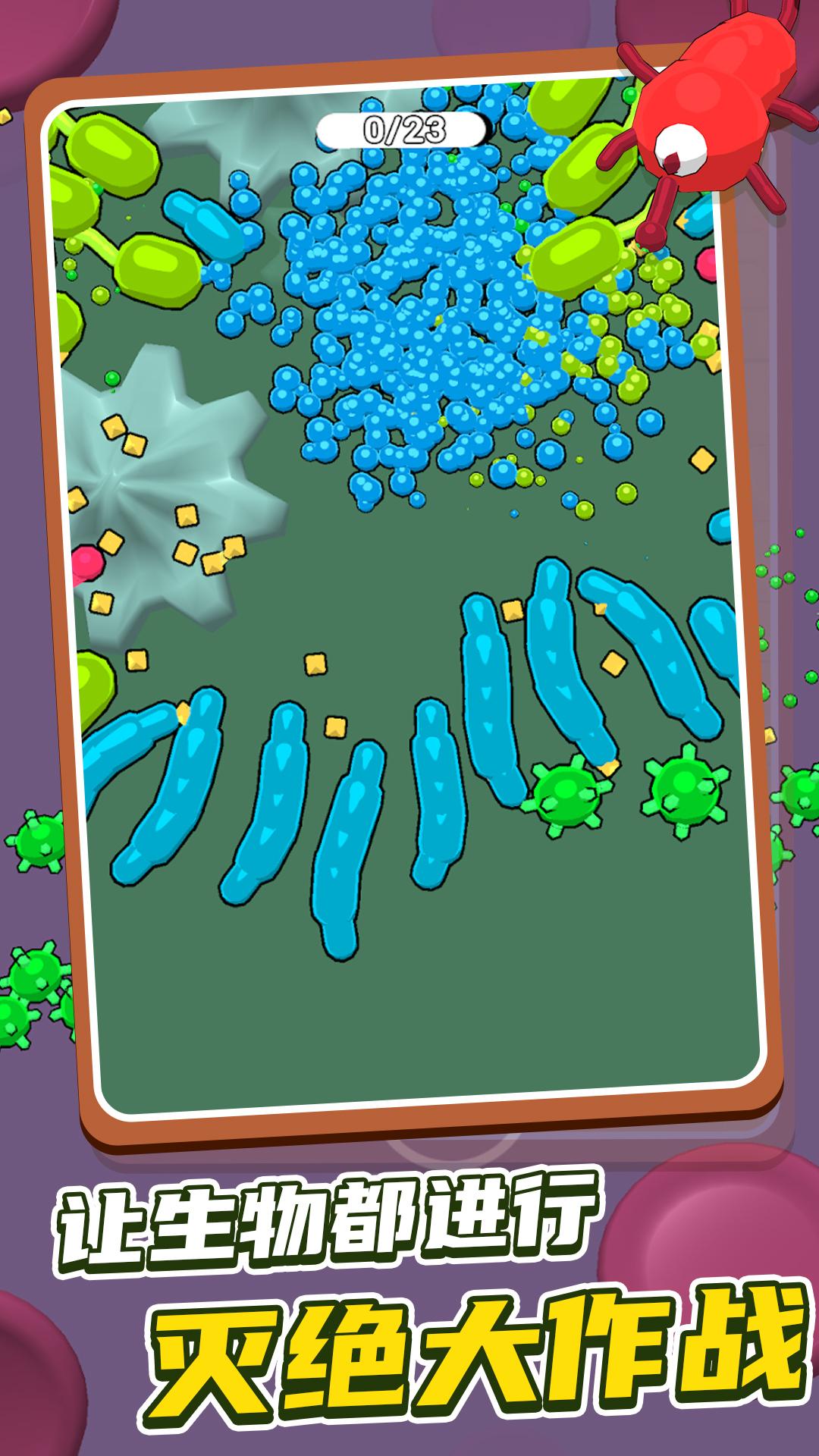 昆虫大乱斗免广告是一款通过细胞昆虫互相吞噬来进化的休闲游戏,玩家通过操控自己的小虫子吞噬各种生物,使之进化成为地图上最强大的昆虫,从而称霸整个地图。