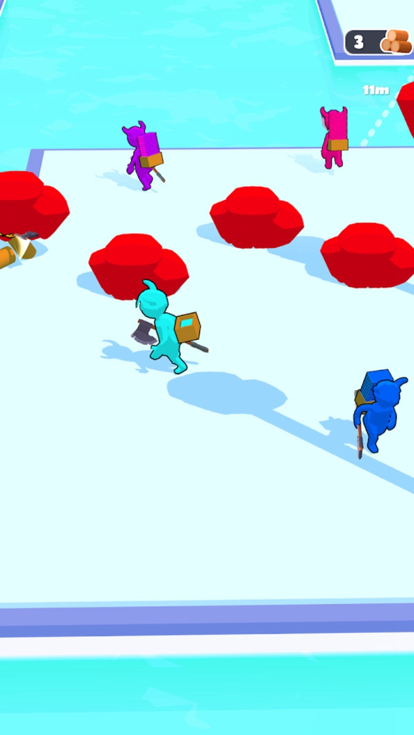 3、不断向前冲刺,完成更丰富的挑战,让砍下来的木头能够顺利突破。