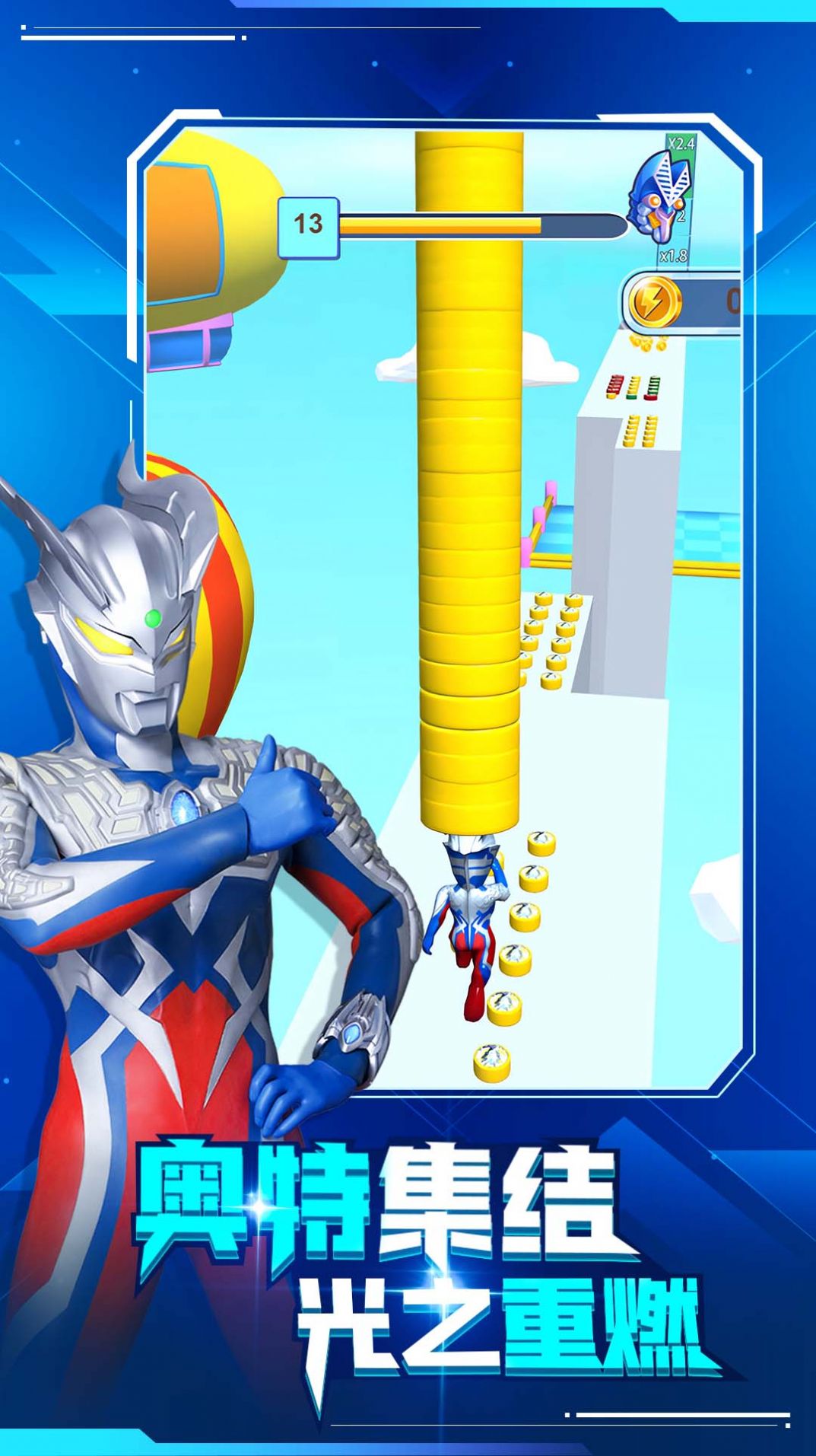 3.立即加入,与成千上万的玩家一起扮演宇宙超人奥特曼救回公主,角逐出最强酷跑超人!