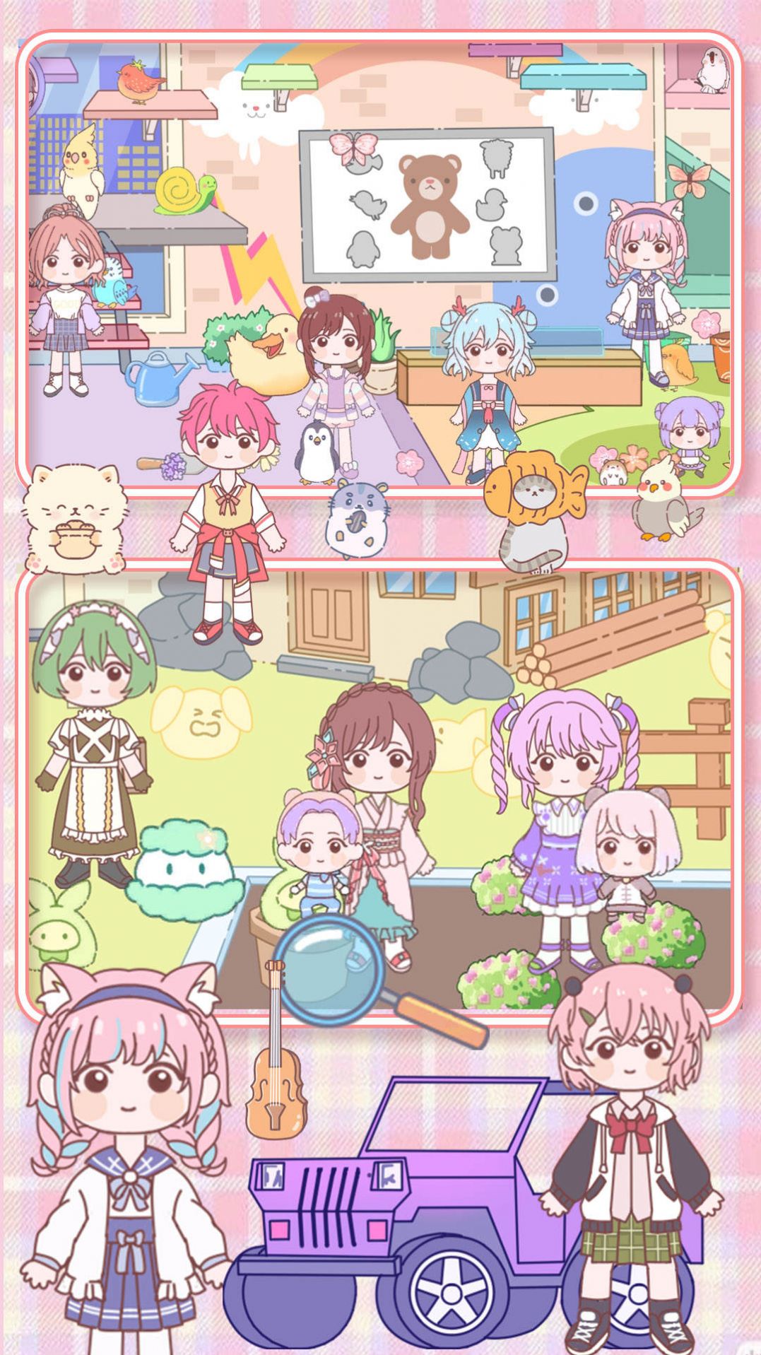 1、包含了多种场景,包括家庭、公园、学校、超市、医院等,让玩家能够在不同场景中尽情探险;